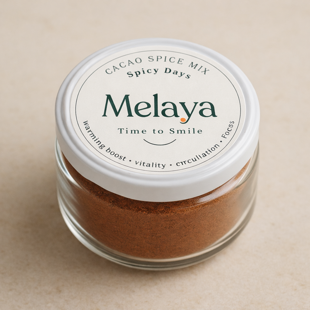 Pure cacao bevat van nature theobromine, wat zorgt voor een stabiele energie. In combinatie met de verwarmende specerijen uit Spicy Days ontstaat een drank die je wakker maakt en helpt om gefocust te blijven, zonder het onrustige gevoel dat koffie soms kan geven.